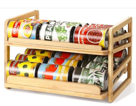 3-Tier può Storage Organizer 36 può supporto con divisori regolabili, ideale per scaffali dispensa e organizzazione cucina
