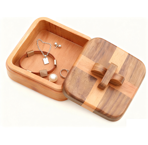 Scatola di memoria artigianale in legno compatto organizzatore di gioielli per anelli, collane e ninnoli, regalo premuroso per tutti i sessi