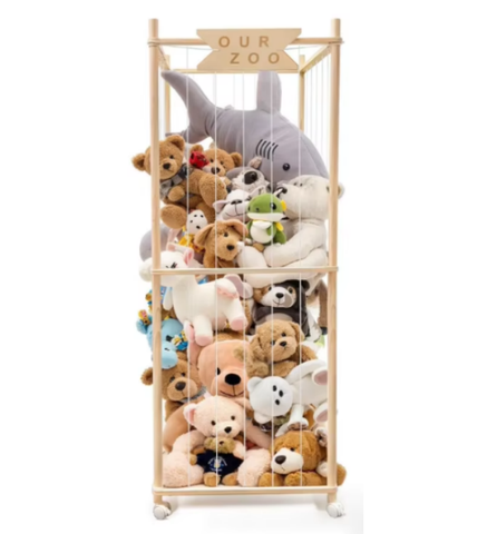 Organizzatore in Legno per Peluche 202501, Design Ispirato al Legno per l'Organizzazione della Stanza dei Giochi e del Soggiorno