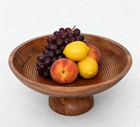 Akasya ahşap meyve kasesi kaide ile-el yapımı yuvarlak nervürlü servis kasesi mutfak için yemek masası dekor ve meyve depolama"