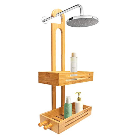 Bambu 2 katlı asılı Rustproof duş rafı banyo setleri 2-raf duş için Caddies banyo organizatör raf şampuan