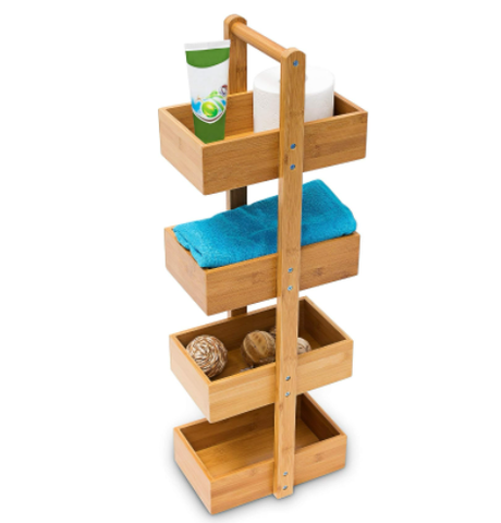 Bambu banyo raf Relaxdays tarafından: 4 sepet raflar 75X25X18 cm ayakta duş depolama ünitesi