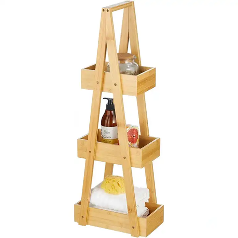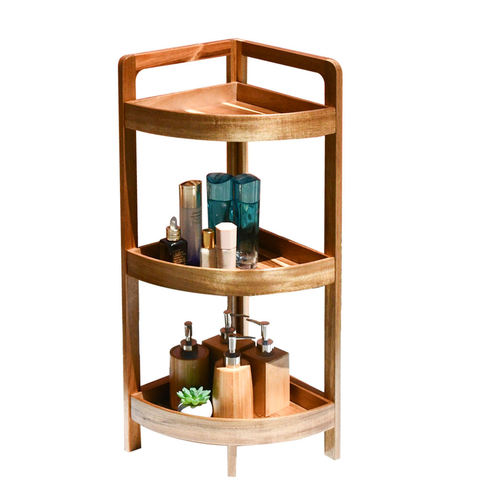 Akasya ahşap 3 katlı banyo su geçirmez duş Caddies vitrin rafı bambu serbest duran köşe raf depolama organizatör