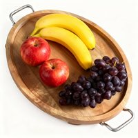 Akasya ahşap meyve ve yemek servis tepsisi oyma tabağı ile paslanmaz çelik saplar ahşap tabak tabak doğal kare mutfak