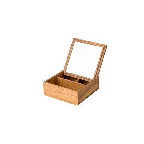 صندوق ملحق مربع من خشب الساج مع طلاء ورنيش لتخزين الأدوات مثل ساعات القلائد خواتم الطاولة
