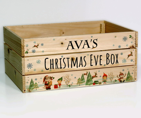 صندوق خشبي مخصص لعيد الميلاد عشية عيد الميلاد ، صندوق خشبي ، صندوق هدايا عيد الميلاد وحب الجان سانتا ، صندوق فارغ للتقديم